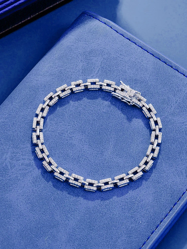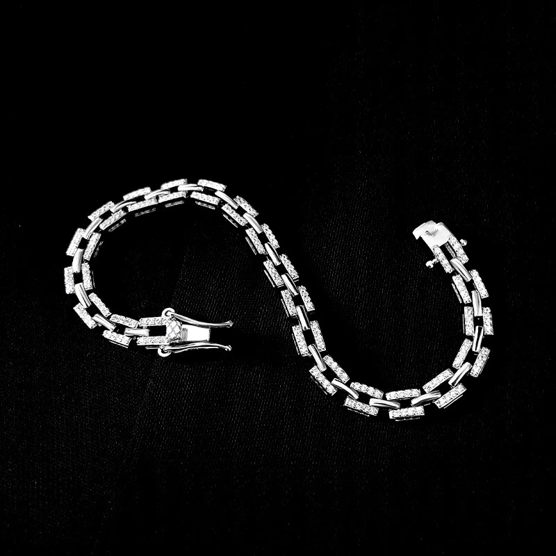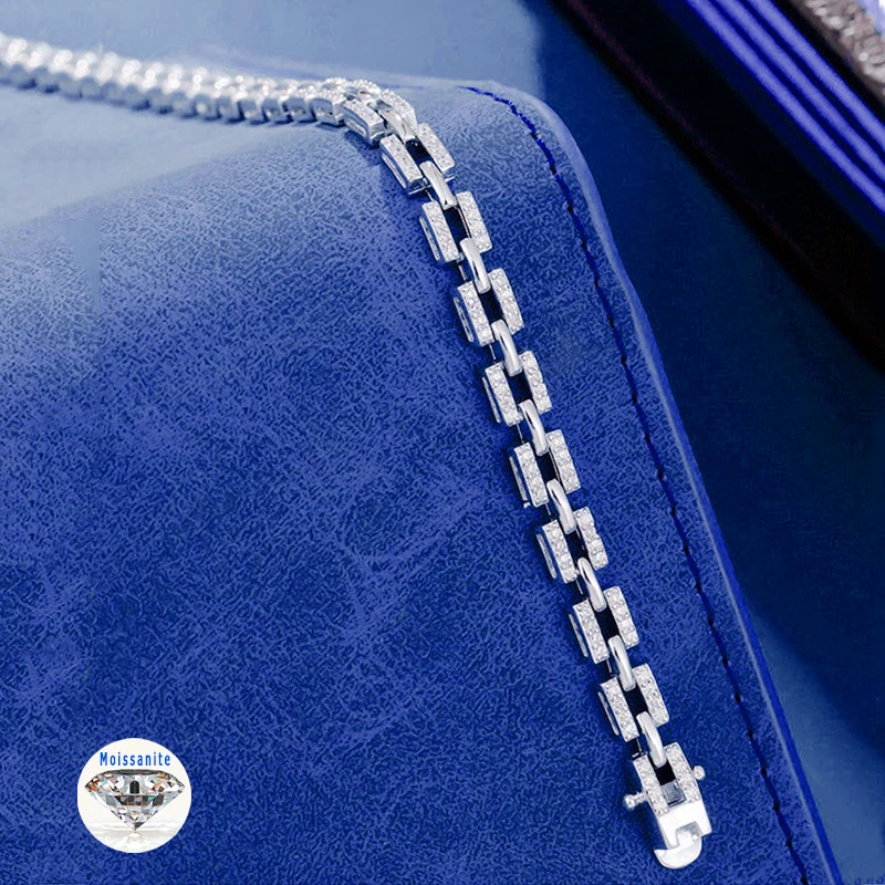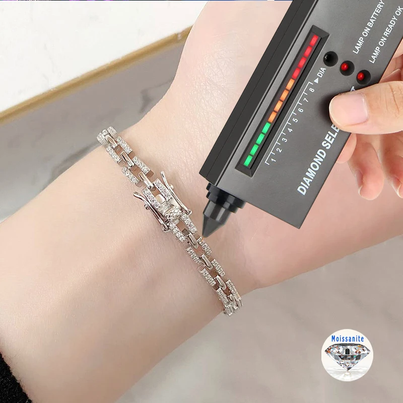 Full Moissanite Bracelet D Color for Women and Men 925 Sterling Silver Chain